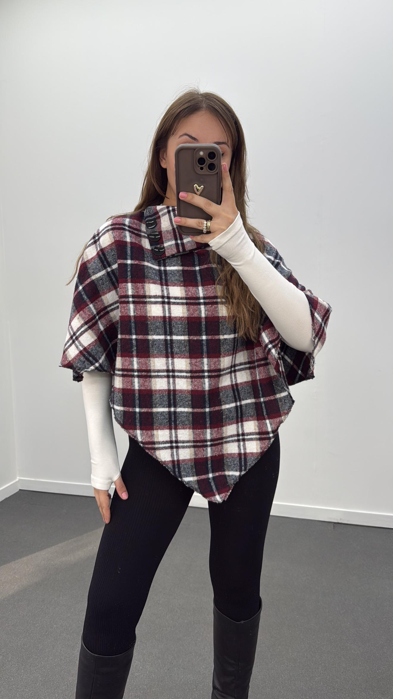 Ahren Bordo 3 Düğmeli Ekoseli Panço