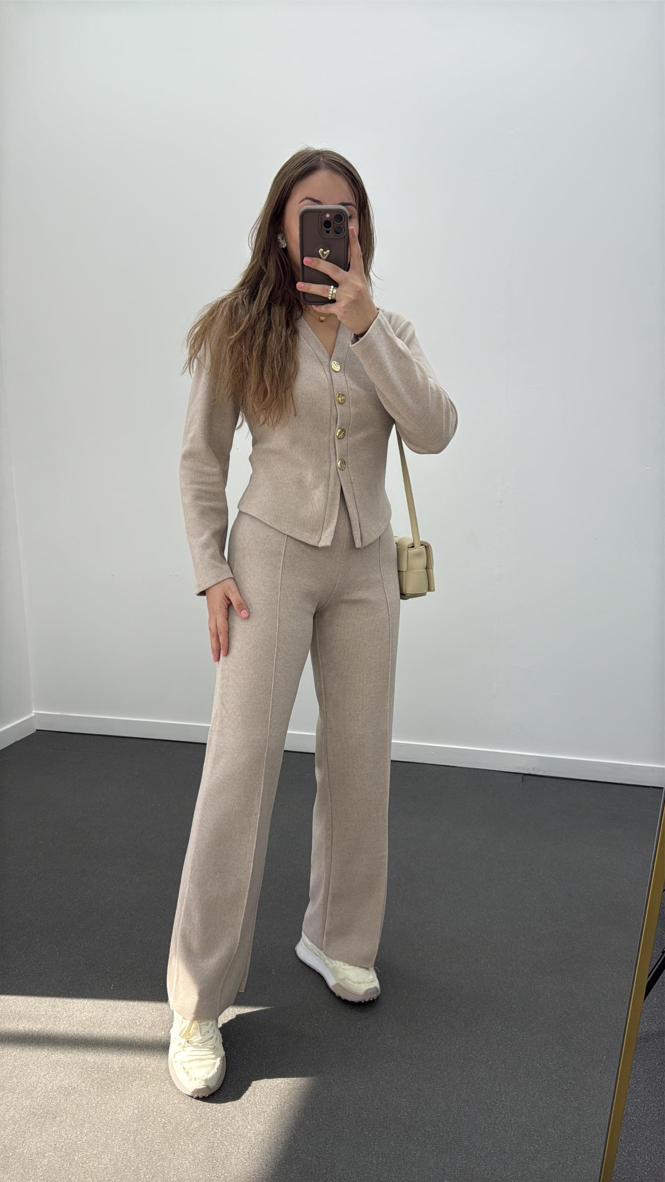 Freya Bej Gold Düğmeli Hırka Ve Triko Pantolon Takım
