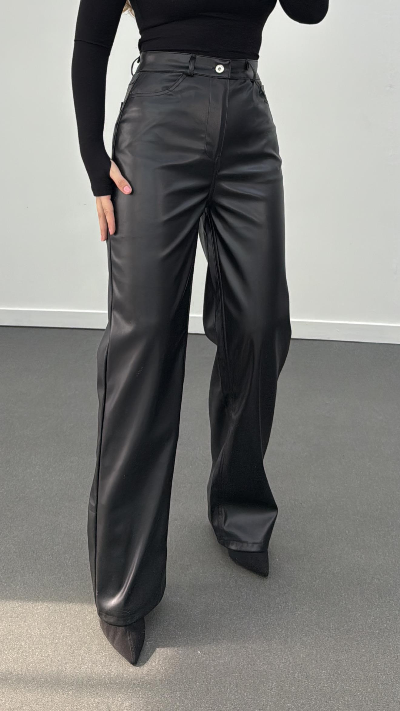 Murphy Siyah Şardonlu Straight Deri Pantolon